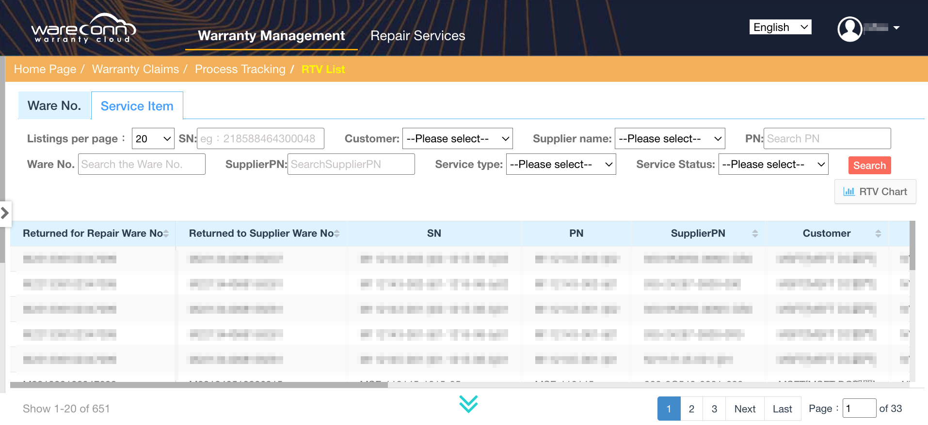 Wareconn Warranty Cloud Platform launched the [RTV (Return to Vendor)] feature on December 04, 2025. As a core component of the warranty chain, this function realizes the full lifecycle traceability and status tracking of defective products through a two-tier warranty process design, further improving the efficiency of warranty business processing and the accuracy of inventory management. Details are as follows: